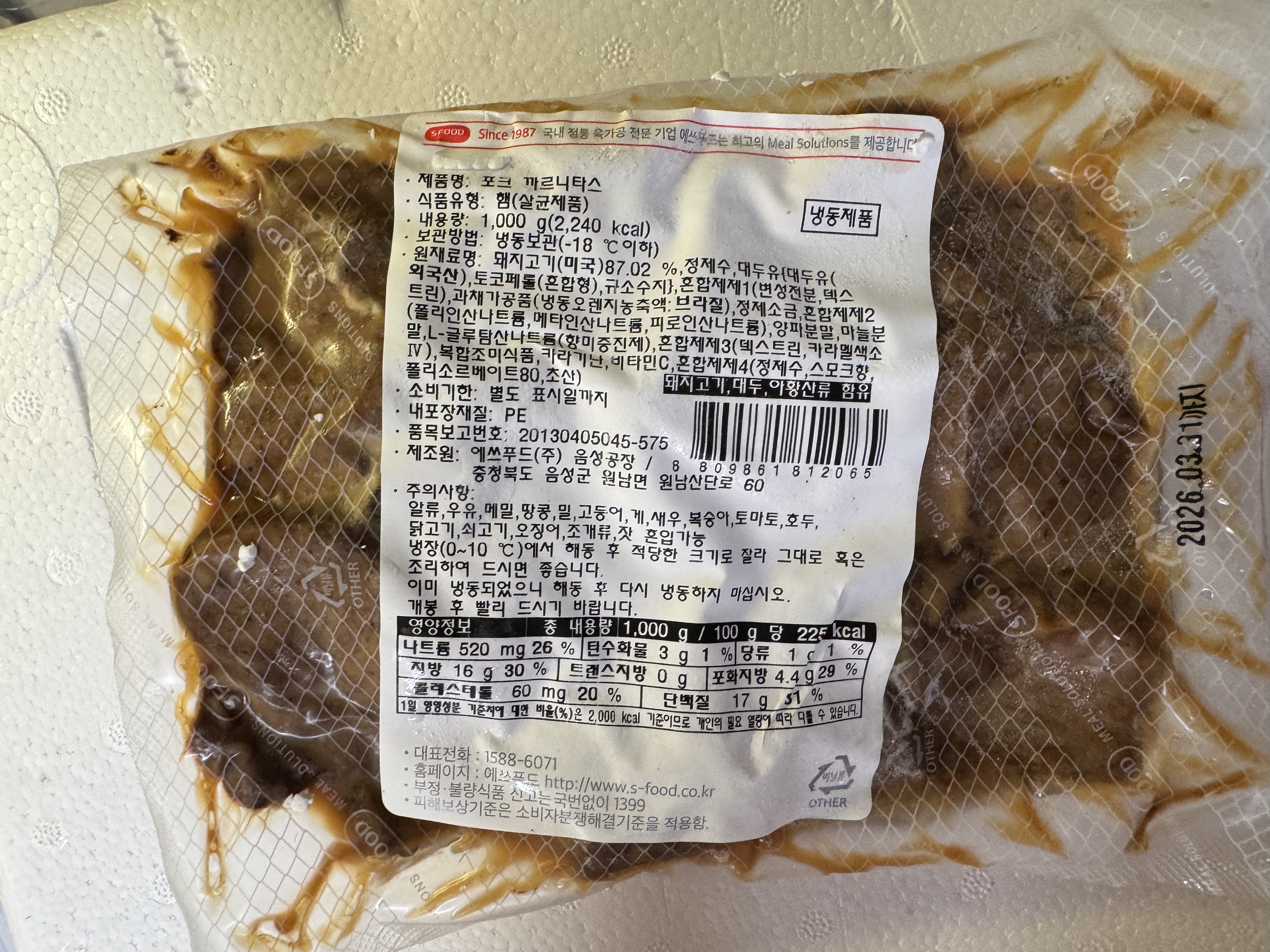 [에쓰푸드] 포크 까르니타스 1kg 21,050원 / 배송비 : 4,000원 주문시결제(선결제)